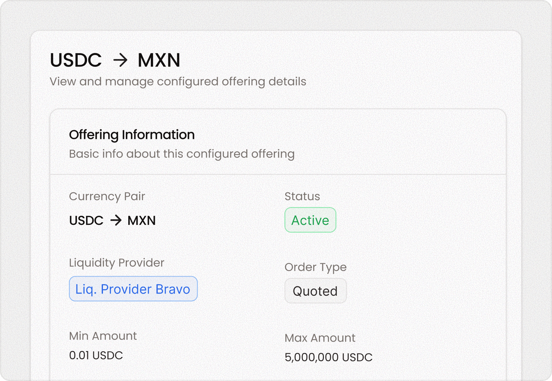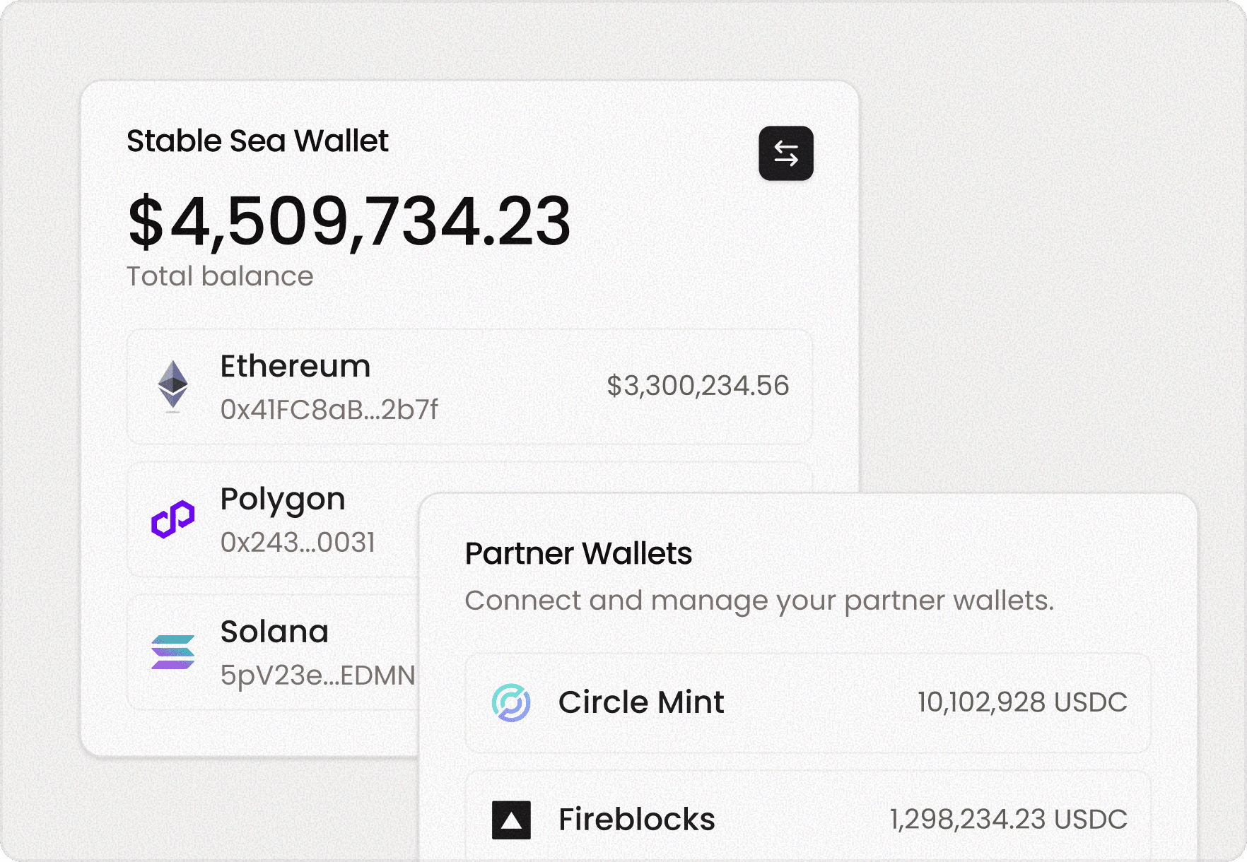 Manage multiple issuers, networks, bespoke stablecoins, wallets and banking endpoints.