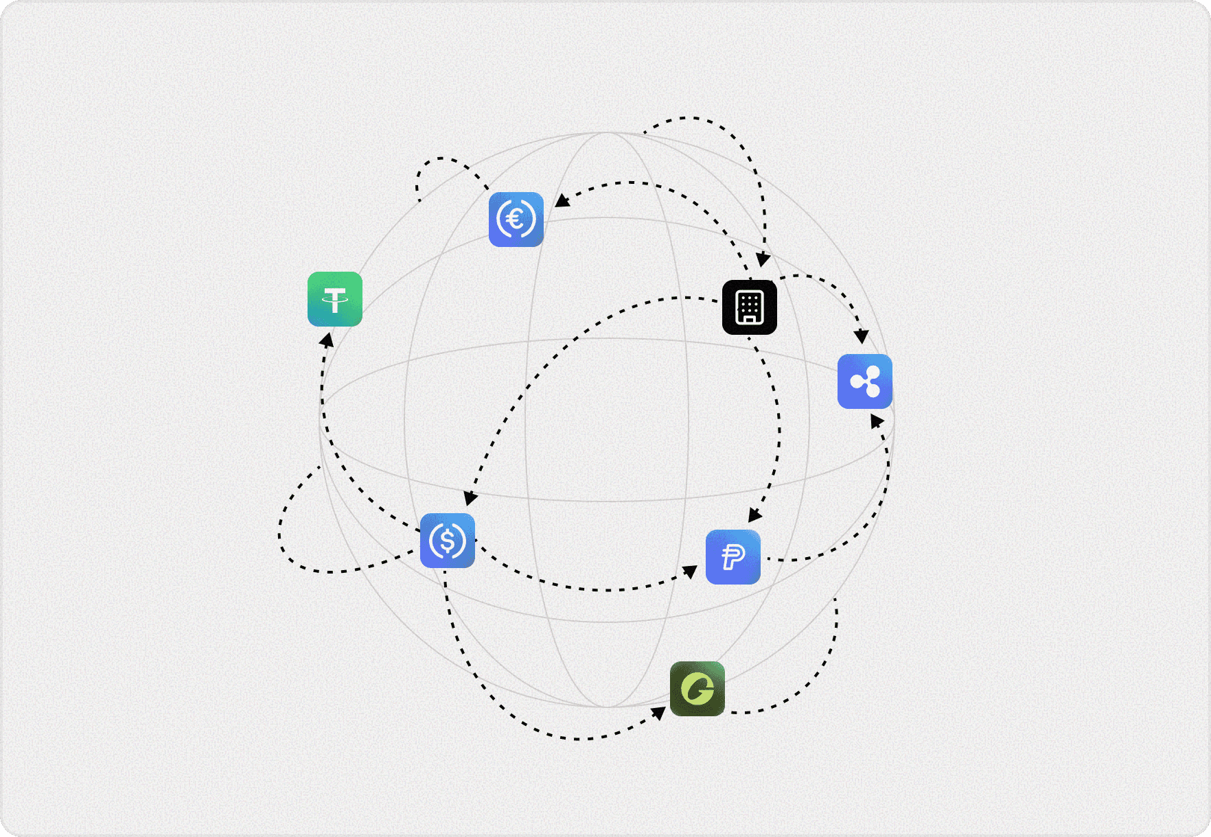 Operate across leading stablecoin networks and route payments by cost, corridor or settlement speed.